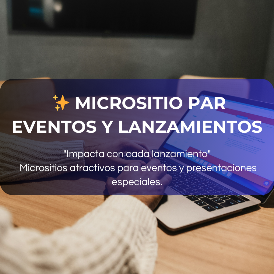 Crea una experiencia digital única para tu evento o lanzamiento con un micrositio profesional. Incluye diseño personalizado, agenda, galería multimedia, formularios de registro y conectividad con redes sociales para maximizar la participación y promoción.